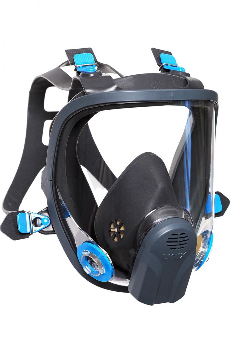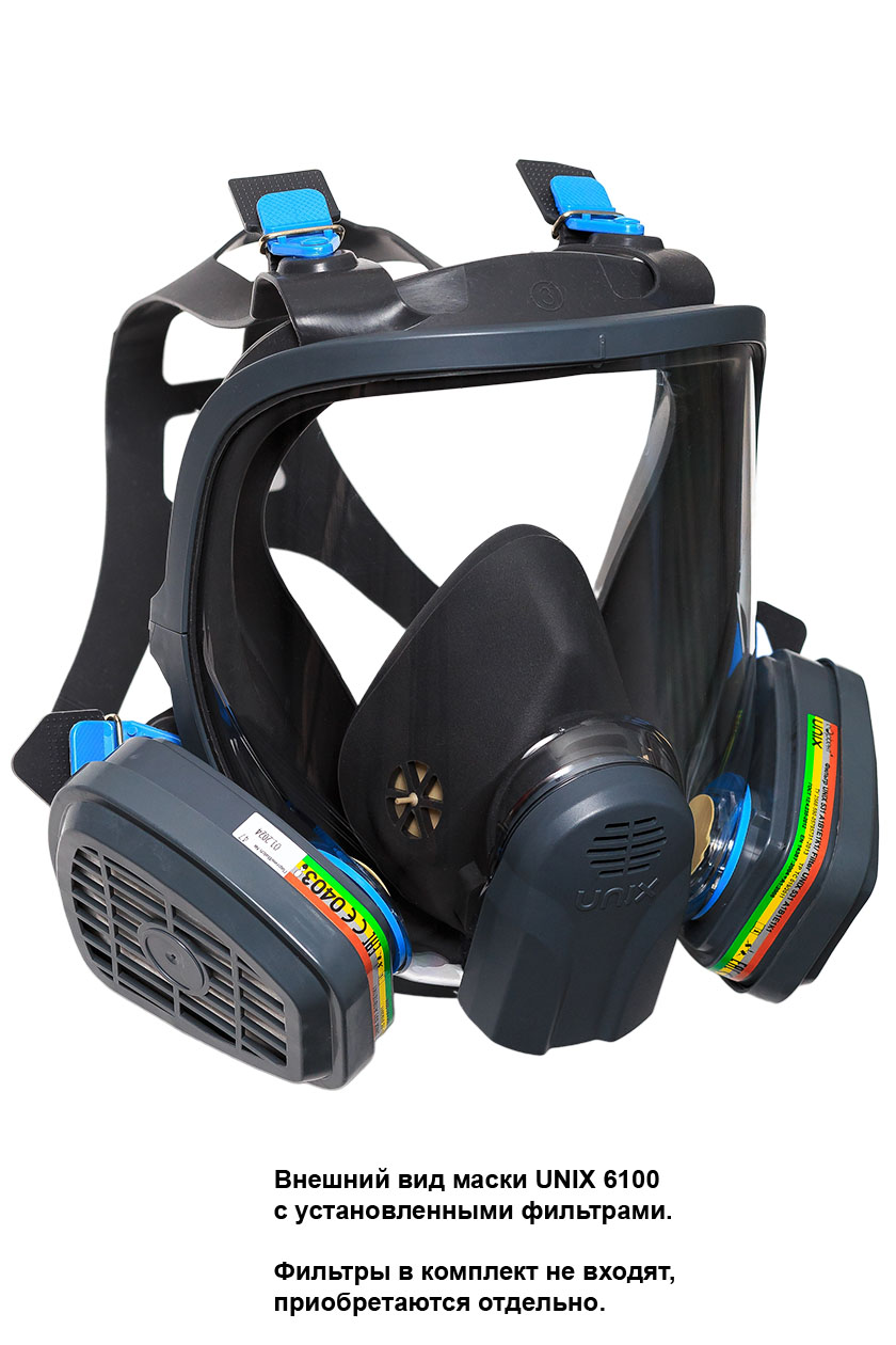 Продажа и поставка оптом полнолицевой маски UNIX 6100 с панорамным стеклом корпусом. Лицевая часть оборудована двумя штыковыми креплениями байонет для быстрого соединения и отстыковки очищающих фильтров. С установленными фильтрами обеспечивает защиту органов дыхания, лица и глаз от воздействия паро- и газообразных вредных веществ.