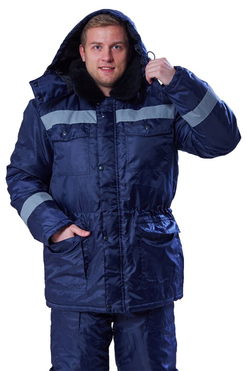 Нижние карманы с объемами с двух сторон. Внутренний накладной карман. Съемный капюшон, пристегивается на кнопки. Рукава с трикотажными манжетами. По линии талии предусмотрена кулиса. СОП 50 мм расположен по шву притачивания кокетки и по рукавам вкруговую.
